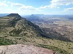 | Topography | Pediment surrounded by steep sandstone mountains |