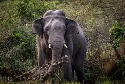 The 31 species of mammals recorded include the Asian elephant, spotted deer, hog deer, wild boar, smooth-coated otter and golden jackal. The Ganges river dolphin has been sighted in the Koshi River. Gaur and nilgai have declined in numbers.[2] Nepal’s last remaining population of about 150 wild water buffalo inhabit the area.[5] This population has now grown to a total of 432 individuals with an annual growth rate of 7.27 percent, according to the latest census carried out in 2016.[6] With this upsurge in the population, authorities are planning a possible transfer of some wild water buffaloes to the flood plains of Chitwan National Park where they have been extirpated in the 1950s.[7]