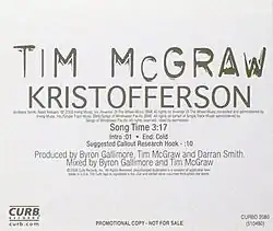 - ^ Vercher, Brady (2008-02-29). "Tim McGraw - "Kristofferson"". Engine 145. Archived from the original on 2014-12-18. Retrieved 2009-04-01.
