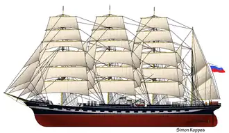 Kruzenshtern or Krusenstern (Russian: Крузенштерн) is a four-masted barque (Russian: барк) that was built in 1926 at Geestemünde in Bremerhaven, Germany as Padua (named after the Italian city). She was surrendered to the USSR in 1946 as war reparation and renamed after the early 19th-century Baltic German explorer in Russian service, Adam Johann von Krusenstern (1770–1846). She is now a Russian sail training ship.