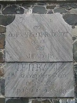- Här har konung Fredrik låtit läggs den första sten år 1748 ("Here laid King Frederick the first stone in the year 1748")