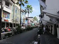 Kuta (Balinese: ᬓᬸᬢ/ᬓᬹᬝ) is a tourist area, administratively an urban village (kelurahan), and the capital of Kuta District, Badung Regency, southern Bali, Indonesia. Kuta is a part of the Denpasar metropolitan area, 12 km (7.5 mi) south of downtown Denpasar. Originally known as a fishing village, it was one of the first towns on Bali to see substantial tourism, and as a beach resort remains one of Indonesia's major tourist destinations. It is known internationally for its long sandy beach, varied accommodations, restaurants and bars, and many renowned surfers who visit from Australia. It is near Bali's Ngurah Rai Airport.