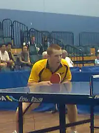 Kyle Davis (born 18 January 1989, in Melbourne) is an Australian table tennis player.[3] He was selected to represent his nation, Australia, at the 2008 Summer Olympics and at the 2010 Commonwealth Games in Delhi, India. As of October 2011, Davis is ranked no. 401 in the world by the International Table Tennis Federation (ITTF).[2] He is also right-handed, and uses the classic grip and Butterfly Jonyer blade.[1]