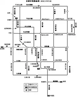 - ^ a b c Okinaka, Tadayori; Fukuda, Seiji (2000). 京都市電が走った街 今昔 [The City Where Kyoto City Tram Ran, Then and Now] (in Japanese). Tokyo: JTB. ISBN 4-533-03421-7.