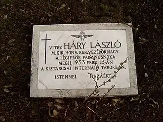 Vitéz (Sir) László Háry (11 August 1890 in Gyömöre – 13 February 1953 in Kistarcsa) was a major general, aviator and a Commander of the First Independent Hungarian Air Force.[1]