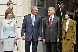 On 26 June 2006, while the President of the United States George W. Bush was visiting Hungary to commemorate the fiftieth anniversary of the 1956 Hungarian uprising, Sólyom told him that "this fight against terrorism can be successful only if every step and measure taken are in line with international law", a comment that many media interpreted as a subtle criticism of the Iraq War.[15]