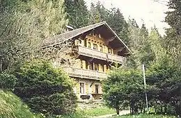 In 1947 Francis and Edith moved to Switzerland to work as missionaries for the Independent Board for Presbyterian Foreign Missions (IBPFM) in Europe.[2][3] Following a spiritual crisis in 1951,[2] and disagreements with theologians such as Carl McIntire, Schaeffer and his wife left IBPFM in 1955, to pursue their dream of working with young people.[4] They moved to Huémoz where they would establish L'Abri.[5] Word of mouth soon led to an increasing stream of visitors, with one period in the summer of 1956 averaging 31 visitors per week.[6] International distribution of tapes of Schaeffer's lectures also helped to raise awareness of Schaeffer's work.[7] The operatic soprano Jane Stuart Smith was one of the visitors to L'Abri in 1956, and she became a born again Christian as a result of that experience. She later abandoned her opera career, and joined the staff at Huémoz where she was a prominent member of the community until her retirement.[8]