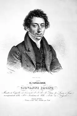 L'ultimo giorno di Pompei ("The last day of Pompeii") is an opera (dramma per musica) in two acts composed by Giovanni Pacini to an Italian libretto by Andrea Leone Tottola. It premiered to great success at the Teatro San Carlo in Naples on 19 November 1825 followed by productions in the major opera houses of Italy, Austria, France, and Portugal. When Pacini's popularity declined in the mid-19th century, the opera was all but forgotten until 1996 when it received its first performance in modern times at the Festival della Valle d'Itria in Martina Franca. L'ultimo giorno di Pompei influenced either directly or indirectly several other 19th-century works, most notably Karl Bryullov's 1833 painting, The Last Day of Pompeii.