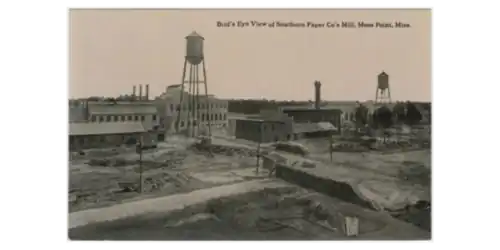 On a trip to England in the early 1900s, J.L. Dantzler consulted with paper industry experts about using the sulfate process for manufacturing kraft paper from southern pines.[7] In 1911, the Dantzler's began construction of a paper mill in Moss Point to make use of waste slabs from their sawmills. The mill began operation in 1913 as Southern Paper Company. International Paper Company purchased the mill in 1928 and operated it through the end of the 20th century. The paper mill closed in 2001.[8]