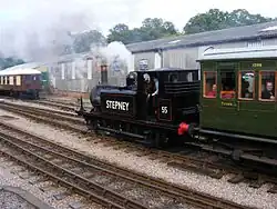 London, Brighton and South Coast Railway A1X Class number 55 Stepney, named after the district of Stepney, is a preserved steam locomotive based at the Bluebell Railway in East and West Sussex, England. Stepney is well known as the first standard gauge engine to be based at the Bluebell Railway, arriving by rail on 17 May 1960.[1] The junior (8 years old and under) membership scheme of the Bluebell Railway Preservation Society is known as the Stepney Club.