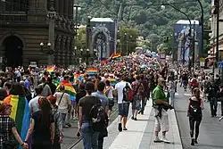 The annual Prague Pride was established in 2011. Prague is also a host of the Mezipatra Queer Film Festival.[1]