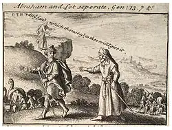 - 1670? Wenceslaus Hollar depicts the departure of Abraham and Lot. Lot is described in the Book of Genesis 18 and 19 as the pious heterosexual with Daughters of Lot during the fire and brimstone of Sodom and Gomorrah for homosexuality.