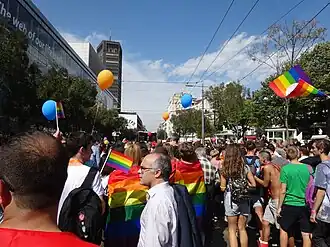 In September 2022, Belgrade hosted EuroPride, a pan-European event hosted in a different city every year, and dedicated to LGBT pride.[55] In doing so, Belgrade became the first city in Southeast Europe and the first outside the European Economic Area (EEA) to host the event, which featured a variety of concerts, conferences, and parades.[56] Over ten thousand people attended, becoming the largest Pride event ever held in Serbia.[57]