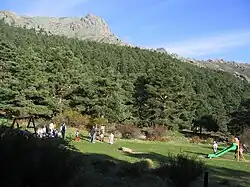 La Barranca valley is a mountain valley located at the foothills of Bola del Mundo (Alto de Guarramillas) (2265 m) and La Maliciosa (2227 m), within the Sierra de Guadarrama (a mountain range part of the Sistema Central).[1] Administratively, it lies within the municipal boundaries of Navacerrada and Becerril de la Sierra, in the northwest of the Community of Madrid, Spain. The valley is home to a dense forest of Scots pine through which flows a mountain river, the Samburiel —a tributary of the Manzanares river—held back by two small dams, the Pueblo de Navacerrada Dam and the Air Force Dam, before emptying into the Navacerrada Dam.