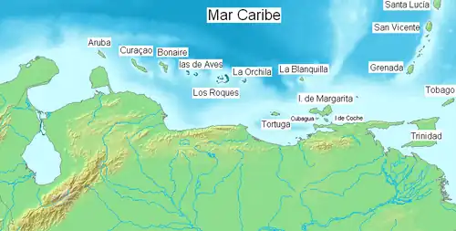 Blanquilla is an island, one of the Federal Dependencies of Venezuela,[1] located in the south-eastern Caribbean Sea about 293 km (182 miles) north-east of Caracas. It is a popular location for divers, as well as famous for its white sand beaches, for which it is named.