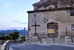 The village still has 3 remaining medieval Gate Doors, which are the Porte St-Jean (built-in January 1561), Porte de la Colle, and the Porte Mazarine, in the ancient medieval walls. Two other older medieval buildings of the village are the Tour de l'Horloge with a 16th-century campanile and the 16th-century St-André church which features a tall hexagonal clock tower.[4]