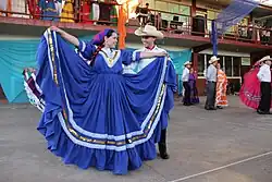 The designation of the capital of Honduran folklore is realised in La Esperanza each year by the folklore festival El Grande de Grandes.[a] Folk dance groups from all parts of Honduras present their regional dances and costumes while competing in this all-day festival.[17]