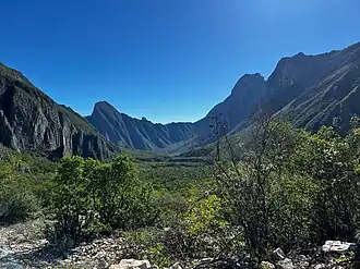 Thanks to the wide ranging topography of La Huasteca, there are temperate zones, mainly being conformed of pine and oak forests; Semi-arid zones, conformed of mainly scrubland; and arid zones, mainly composed of cacti and agave. Nearly 2.5% of the 1300 species found in La Huasteca are endemic to the state of Nuevo Leon.[4]
