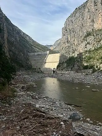 Parque La Huasteca is a municipal park in Monterrey, Mexico. It is part of Cumbres de Monterrey National Park, which was established by president Lázaro Cárdenas in November 1939 and declared a UNESCO Biosphere Reserve in October 2006. It is part of the Sierra Madre Oriental mountain range, and its part of the Huasteca Region, from where it derives its name. It is a natural canyon formed by the Santa Catarina River. It is around 200 hectares in area.[1] It also has the highest precipitation of the state, Nuevo Leon, and is home to La Presa Rompepicos. The canyon is mostly conformed of limestone, reaching heights of over 550 meters. This limestone comes from the Late Jurassic, nearly 161 million years ago. Though the formation of the mountain itself was during the Laramide orogeny, around 40 to 20 million years ago.[2][3] Having nearly 400 bolted routes with grades from 5.4 to 5.14, and no entrance fee for most climbing areas, it has become a very popular site for climbers.