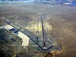 The airport covers 4,200 acres (1,700 ha) at an elevation of 4,229 feet (1,289 m). It has two runways: 8/26 is 6,849 by 75 feet (2,088 x 23 m) and 12/30 is 5,803 by 60 feet (1,769 x 18 m). It has one helipad, H1, 145 by 145 feet (44 x 44 m).[1]