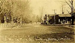 By 1877, the town was home to a hotel, several churches, more than a dozen stores, a grain elevator, doctors, and a one room schoolhouse. These businesses made up a downtown area of three blocks. The Allen School was built in 1887 to alleviate overcrowding brought on by the increasing population and consolidation of public schools.[5] A fire on May 19, 1916, destroyed much of the northern portion of the downtown area.[6]