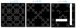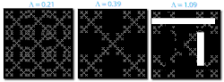Lacunarity, from the Latin lacuna, meaning "gap" or "lake", is a specialized term in geometry referring to a measure of how patterns, especially fractals, fill space, where patterns having more or larger gaps generally have higher lacunarity. Beyond being an intuitive measure of gappiness, lacunarity can quantify additional features of patterns such as "rotational invariance" and more generally, heterogeneity.[1][2][3] This is illustrated in Figure 1 showing three fractal patterns. When rotated 90°, the first two fairly homogeneous patterns do not appear to change, but the third more heterogeneous figure does change and has correspondingly higher lacunarity. The earliest reference to the term in geometry is usually attributed to Benoit Mandelbrot, who, in 1983 or perhaps as early as 1977, introduced it as, in essence, an adjunct to fractal analysis.[4] Lacunarity analysis is now used to characterize patterns in a wide variety of fields and has application in multifractal analysis[5][6] in particular (see Applications).
