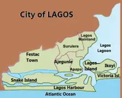 Lagos shown within the State of Lagos