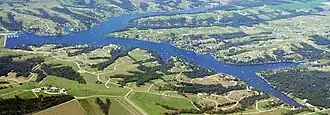 Lake Carroll is a private man-made recreational lake located in Carroll County, Illinois. It was formed in 1974 by the damming of the east fork of the Plum River near the town of Lanark, Illinois. The earthen dam[2] is owned and operated by the Lake Carroll Association.[3] It is the largest private lake in the state of Illinois. Access to the lake is permitted only to members of the Lake Carroll Association, which is composed of the owners of property both on and off the lake. The community surrounding the lake is the Lake Carroll census-designated place.