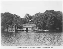 Back in 1886, Lake Eacham (Yidyam) was included within original survey plans subdividing the whole of the Lake Eacham area into farming blocks.[6] By 1888, however, the scenic value of the lake was recognised, and both the lake plus a narrow band of 'shoreline' rainforest were formally proclaimed "scenic reserve".[6] For almost 50 years (1888–1936) the Lake was managed, used and enjoyed as a scenic reserve, with, at times, boats and boating; a guest house; speed boats; and watersking.[6]