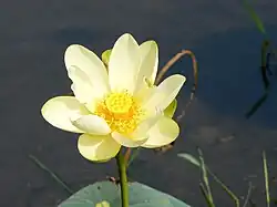 Submerged vegetation is abundant throughout the lake and include blue hyssop, coontail, green fanwort, variable-leaf milfoil, and bladderwort. Marsh plants include maidencane, pickerelweed, American lotus, and slender spikerush. Numerous wetland tree and woody plant species also inhabit the drier portions of the transitional marsh. These include sweetgum, a variety of oaks, wax myrtle, the Carolina willow (salix caroliniana), and elderberry. Exotic invasive species have also established themselves in some areas, including Chinese tallow and hydrilla.[12]