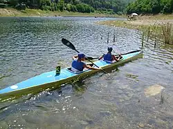 The lake, located in a rugged valley of great naturalistic interest, surrounded by forests of beech, conifers, chestnut, and sessile oak, is a popular tourist destination.[1] For water sports such as rowing, it hosts regional rowing competitions and interregional canoe races, in addition to a costumed regatta with homemade vessels and the Trofeo Internazionale Lago di Osiglia. For sport fishing of trout, provincial regulations apply.