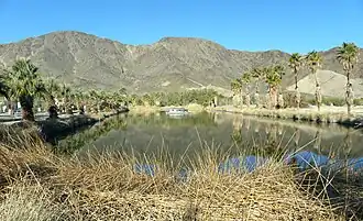 Lake Tuendae is an artificial pond at the Desert Studies Center in Zzyzx, California. It is inhabited by mudhens as well as the endangered Mohave tui chub.