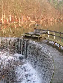The lake Warfaaz is an artificial lake located in Wallonia near the thermal city of Spa in Ardennes in Belgium. The dam was built in 1892 on the Wayai river. The water volume is 360,000 m³ and the area is 0,08 km². It is a tourist attraction, with water sports, including pedalo and fishing.