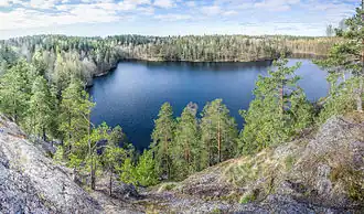 Lake Yastrebinoye (Russian: Ястреби́ное о́зеро, IPA: [ˈozʲɪrə jɪstrʲɪˈbʲinəjə], lit. Hawk Lake; Finnish: Haukkajärvi, lit. Hawk Lake) is a 2 km long lake[1] in Priozersky District of Leningrad Oblast, close to the border with the Republic of Karelia, in the northernmost part of the Karelian Isthmus, 10 km from the railway station Kuznechnoye.