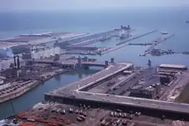 Buildings in the development have featured new segments of pedway. These have been integrated into the Chicago Pedway system, segments of which have formally existed since 1951. The pedway system provides connections between public and private buildings, Chicago Transit Authority stations and Metra commuter rail facilities.[13] The pedway has generated controversy among Lakeshore East residents due to segments of promised pedway which have not been constructed. The archives available on the NewEastside.org website show numerous plans and unfulfilled promise regarding connecting the pedway to most of the New Eastside.[14] Among developers' unfulfilled promises regarding the pedway is promises dating as far back as the 1990s that the development would feature the construction of a full pedway link to Buckingham Plaza and North Harbor Tower.[15]