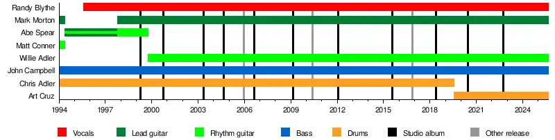 In 1994, bassist John Campbell, drummer Chris Adler, and guitarists Mark Morton and Matt Conner started a band named Burn the Priest.[1][2] The band members knew each other from the college they were all attending, Virginia Commonwealth University, in Richmond, Virginia.[3] Morton and Conner left the band soon after its inception to pursue a master's degree and work on other bands respectively.[1][2] Adler and Campbell replaced Morton with Abe Spear.[1] For the next five years, the band practiced in Richmond and around Virginia.[1] In 1995, the band released its self-titled first demo.[4] After the demo, Burn the Priest recorded two split EPs with Agents of Satan and ZED respectively.[4] After the band's first three demos, Burn the Priest added vocalist Randy Blythe to its line up.[4]