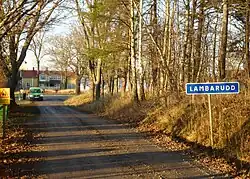 The name Lambarudd comes from the fact that it was very appropriate to block off the cape from wild animals in the spring and let the sheep lamb in this place. It became Lambarudden and later Lambarudd. The bay outside became Lambarfjärden, and much later, the island of Fäön also changed its name to Lambarön. The area originally belonged to Hogsta farm. Over time, Lambarudd became a tenant farm with agriculture and one of Lovö's largest commercial gardens with ten greenhouses, outdoor cultivation with bench windows, flower cultivation, many berry bushes and fruit trees, employed staff, and gardening students.