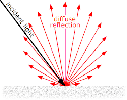 Lambertian reflection from polished surfaces is typically accompanied by specular reflection (gloss), where the surface luminance is highest when the observer is situated at the perfect reflection direction (i.e. where the direction of the reflected light is a reflection of the direction of the incident light in the surface), and falls off sharply.
