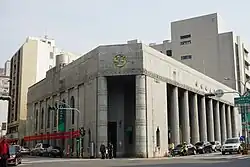 The bank building was originally constructed during the Japanese rule of Taiwan in the 1920s and established under the name of Nippon Kangyo Bank's Tainan Branch (Chinese: 原日本勸業銀行台南支店). Kangyo means promoting and awarding industries in Japanese language.[1] After the handover of Taiwan from Japan to the Republic of China in 1945, the government seized the building and used it as Land Bank of Taiwan. In 1983, the arcade at its western side was demolished to make way for the Zhongyi Road widening and was subsequently restored.[2]