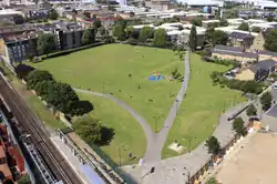 Langdon Park is a Docklands Light Railway (DLR) station in Poplar in London, England. The station is between All Saints and Devons Road stations on the Stratford-Lewisham Line. Construction of the infill station began on 17 November 2006,[7] and the first day of operation was 9 December 2007.[8][9]
