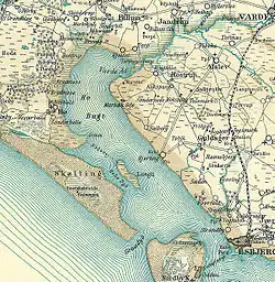 It is 0.8 km (0.5 mi) long and is accessible from Ho over a 3 km (2 mi) long causeway at low tide. Langli (original “Langeleje” = long camp) was up to the flood of 1634 part of a peninsula. Afterwards sea-laterally a second peninsula (today Skallingen) began to develop itself, which from now on protected Langli.