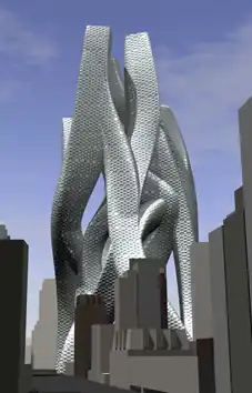 In 2001 his design for a new WTC in New York brought him renewed international attention. A few years later, in 2004, several works of Lars Spuybroek were completed. In France the Maison Folie de Wazemmes was opened, a cultural center at the heart of a derelict area in Lille. In the Netherlands the D-tower was completed, a large, interactive sculpture for the city of Doetinchem which he created together with Dutch artist Q.S. Serafijn. This tower connects directly to a website that surveys the emotional lives of the inhabitants.[10] Close to Eindhoven, in the small city of Son-en-Breugel, the Son-O-House was opened, an interactive sound sculpture conceived together with composer Edwin van der Heide.