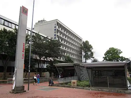 Las Aguas is a station on the TransMilenio mass-transit system of Bogotá, Colombia.