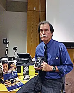 José Galvez (born 1949) first entered the Arizona Daily Star newsroom as a 10-year-old shoe shine boy and then became a regular visitor at the Tucson, Arizona-based newspaper. The journalists at the Arizona Daily Star motivated him and Galvez learned journalism skills while growing up. He purchased his own camera at a pawn shop while in high school and first photographed the people and places in his barrio. At the University of Arizona, Galvez majored in journalism. Galvez became a staff photographer at the Arizona Daily Star after graduation.[14] Galvez was the first Mexican American photographer hired by the Los Angeles Times and worked there from 1980 to 1992. Galvez used his personal experience at photographing Mexican Americans in Tucson to illustrate the Los Angeles Times' Pulitzer Prize–winning series. He left the LA Times to do solo photography work. Galvez's recording of Latino life in the United States in monochrome photography has illustrated several of his books, including "Vatos" (ISBN 0938317520) and "Shine Boy" (ISBN 9780982433904), a memoir about his childhood, and two other edited books "Beloved Land" (ISBN 9780816523825) and "Americanos" (ISBN 9780316649148).[15][16][17][18][19]