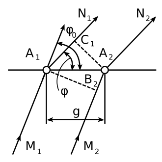 The incident and diffracted waves propagate through space independently, except at points of the lattice of the crystal, where they resonate with the oscillators, so the phases of these waves must coincide.[1] At each point of the lattice , we have