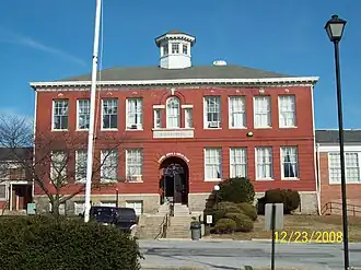 Proposed in 1897, Laurel's seven-term mayor Edward Phelps succeeded in constructing the first high school in Prince George's County in 1899, despite several financial obstacles, by personally assuming the financial risks in doing so. The original building built for $5,000, now known as the Phelps Community Center, still stands at the northeast corner of Montgomery and Eighth Streets.[31] It was listed on the National Register of Historic Places in 1979.[32]
