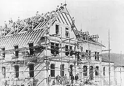 In 1913 a wooden hut was built between the signal box and the track supervisor's office (Bahnmeisterei). A year later, at the outbreak of the First World War, the military authorities operated troop trains over the line every 90 minutes. It was said that a lavatory with a capacity for 100 people had been built behind the hut for this operation.[13]