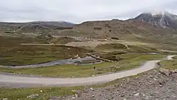 The Lawriqucha River originates in a small glacial lake called Niñococha in the Raura mountain range at an elevation of 4,809 metres (15,778 ft).[3] In 1952 this lake was identified as the source of the Amazon River by an English explorer, Sebastian Snow. Several other sources of the Amazon have been proposed. From Niñococha the river flows north through the Raura mine to Lake Lauricocha.[4][5] Extensive mining began in the headwaters of the Lauricocha in 1927. The Raura mine is one of the highest in the world operating up to an elevation of 4,791 m (15,719 ft).[6] The extensive area of mining activity has polluted some of the area's lakes and interrupted the flow of the river. [7]