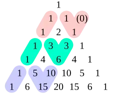 The lazy caterer's sequence (green) and other OEIS sequences in Bernoulli's triangle