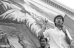 ![]() Lean Alejandro (standing with a microphone) during a students' protest against Marcos | |